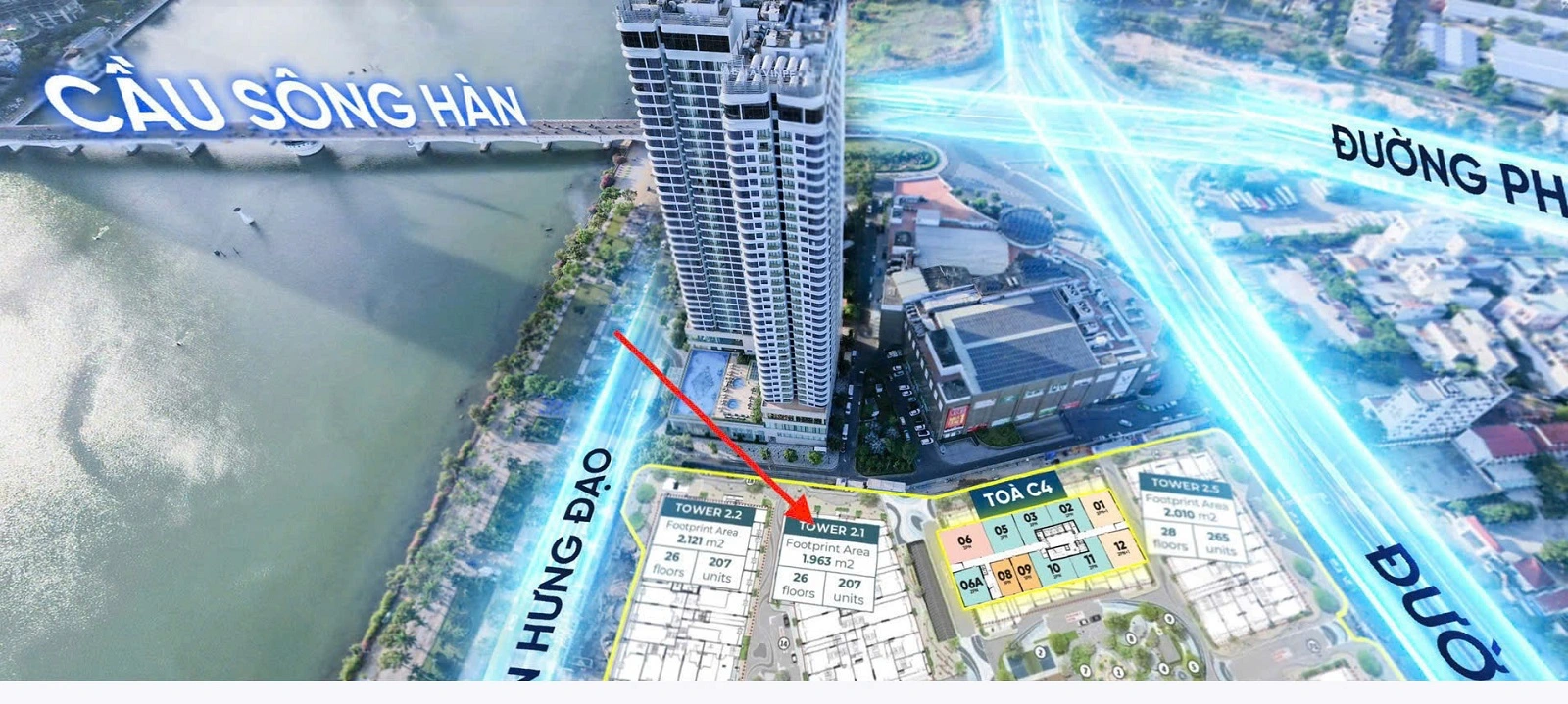 C1 Times Place nằm trong quần thể Capital Square, ngay khu vực ven sông Hàn. Đây là lợi thế mà không nhiều dự án tại Đà Nẵng có được. Trong bất động sản, vị trí ven sông luôn được đánh giá cao hơn về mức độ nhận diện, giá trị sử dụng và khả năng giữ giá.